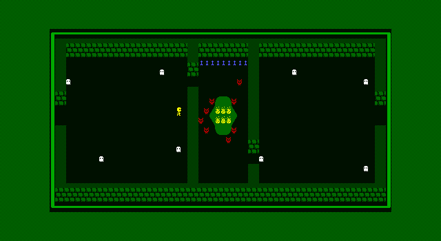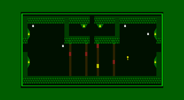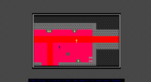 On the note of graphics, once again, ZZcroak managed a game with a single palette/charset without seeming to badly confined. The overall aesthetic is much like the first game, about the same looking enemies and landscape, but everything is just a tiny, tiny bit better. Almost un-noticeably I'd say: still has great fields of a single char, an overused single if good looking brick char, and some okay char editing, these graphics work. They don't do much more, but I'm not sure I'd want them to. Nothing graphical goes to far into the fancy, but there are some halfway neat effects that thought really tied the game together visually.