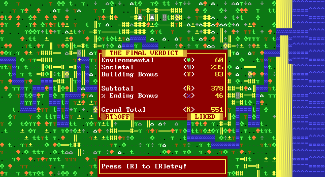 Made in about the last day and 1/2 of Procjam; apologies for any balance issues. Let me know your score if you review this.