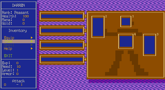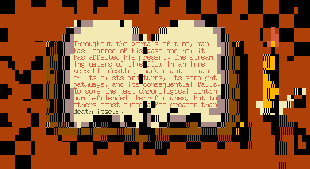 Navigation of menus and text-boxes pretty easy, which is a plus. A couple of the text-boxes seem to freeze-up, sort of. I broke out of one of them by holding space and pressing a button to walk away.