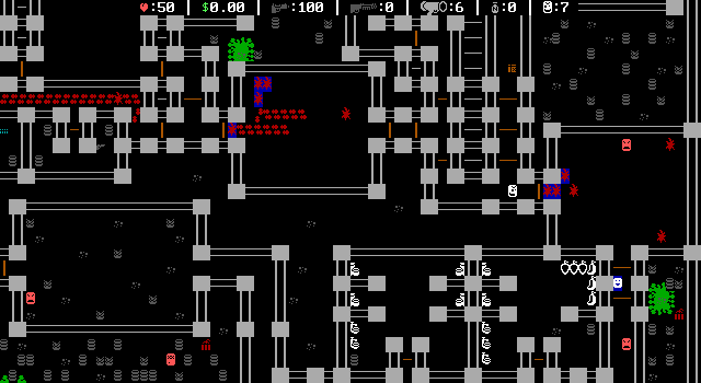 The Game of Murder, Death, Doom and Destruction. A game with a pretentiously long title, yet it's also one of the most satisfyingly violent MZX action games to grace my monitor. Enemies become small puddles of blood upon dying, and you can proceed to step on them and track the blood all over the levels if you so desire. Killing enemies with rockets results in a very, VERY large pool of blood. Unfortunately, all the stuff planned for this game never got implemented in the demo - instead we have the single-player portion, which has only a few levels.