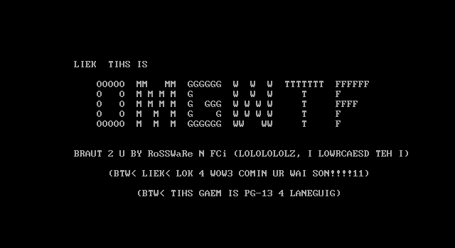 Ever wondered what a game would be like if MZXer was on crack! Well look no further! This was simply a joke game RoSS made and all that fake praise was just to get people to download it and go "WTF?"