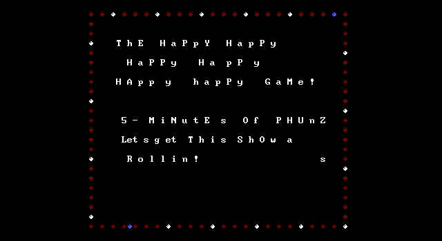 So, this game is basicly an advertisement of the "upcomming" game, The Happy Happy Happy Happy Happy Happy Game. I think the cinema style and graphics were okay, but I have a *thing* against games only meant to advertise one thing. What would make advertising games better would be if they were in collections or catologues. I don't know when this was made, but I guess we should look for The Happy Happy Happy Happy Happy Happy Game. Great cinema -- 3/5